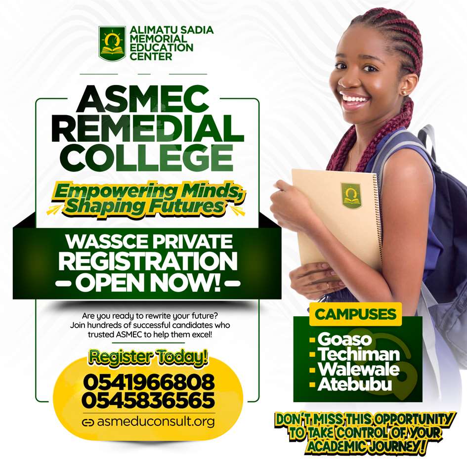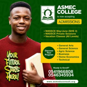 Empowering Minds; Shaping Futures – ASMEC College is proud to announce that admissions are officially open for the 2025/2026 academic year. Whether you're entering SHS 1, SHS 2, or preparing for your final year in SHS 3,